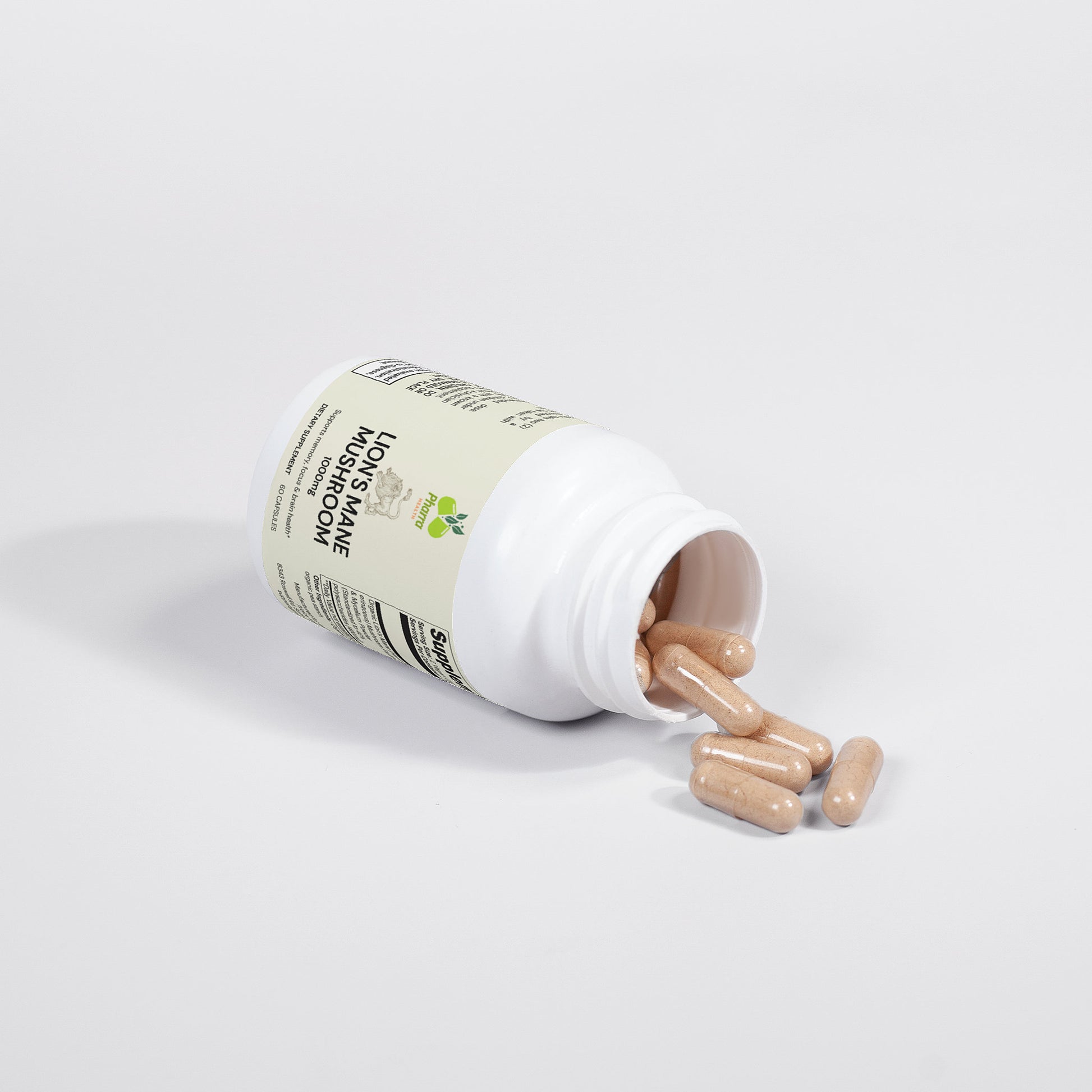 Ingredients: Organic Lion’s Mane (Hericum erinaceus) Mushroom Fruiting Body & Mycelium Powder (Standardized to 40% polysaccharides [400mg]), Vegan Capsule (modified cellulose, water).