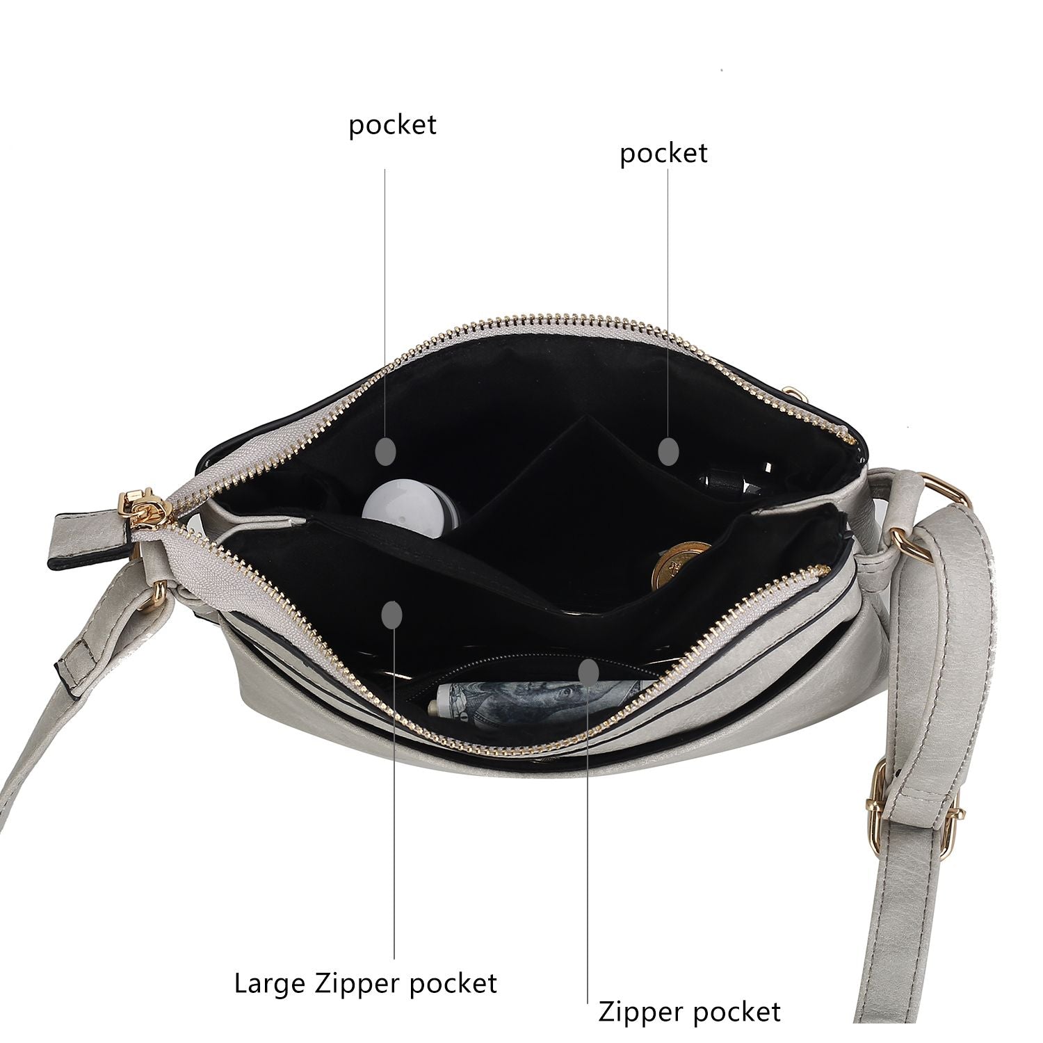 Interior: Two spacious compartments, one zipper pocket, and two slip-in pockets