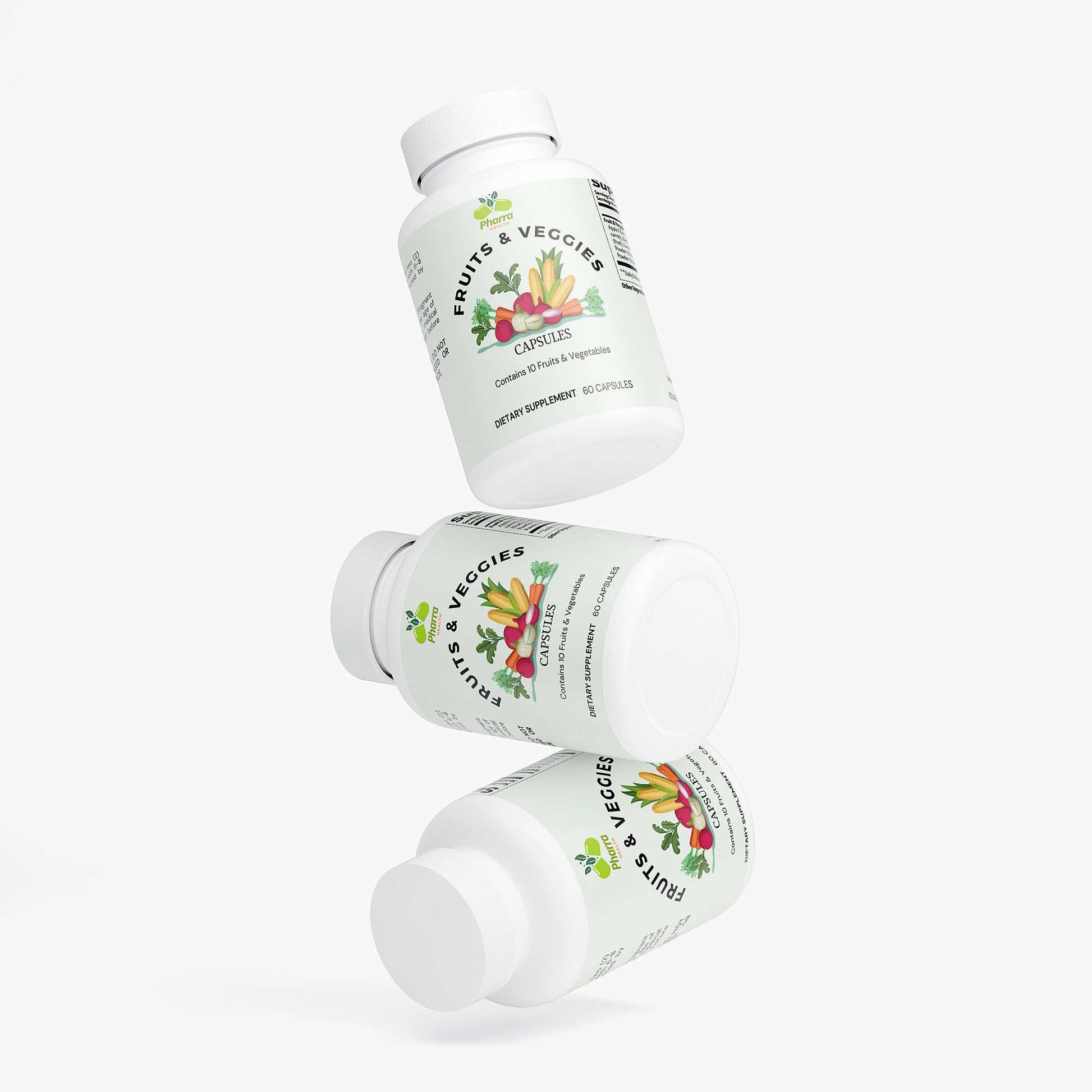 Ingredients: Apple Fiber Powder (Malus pumila) (fruit), Carrot Powder (whole carrot), Beet Root Powder (Beta vulgaris) (root), Blueberry Powder (fruit), Garlic Powder (bulb), Ginger Powder (root), Raspberry Powder (fruit), Red Bell Pepper Powder (fruit), Strawberry Juice Powder (fruit), Tomato Extract (Lycopersicon esculentum) (fruit), Gelatin (capsule), Brown Rice Flour.