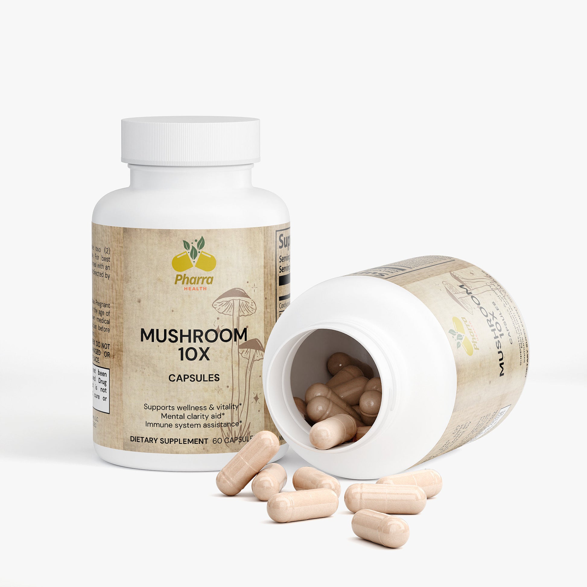 Ingredients: Cordyceps Sinensis Powder, Reishi Mushroom Extract, Shiitake Mushroom Extract, Lions Mane, Proprietary Blend (Maitake Mushroom Extract, Turkey Tail Extract, Chaga Mushroom Extract, Royal Sun Agaricus Extract, White Button Mushroom Extract, Black Fungus Extract, Cellulose (Vegetable Capsule), Microcrystalline Cellulose, Magnesium Stearate.