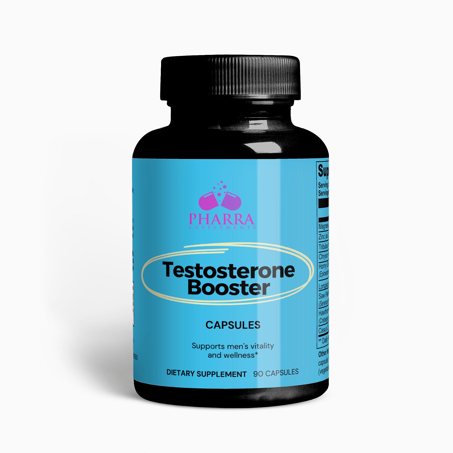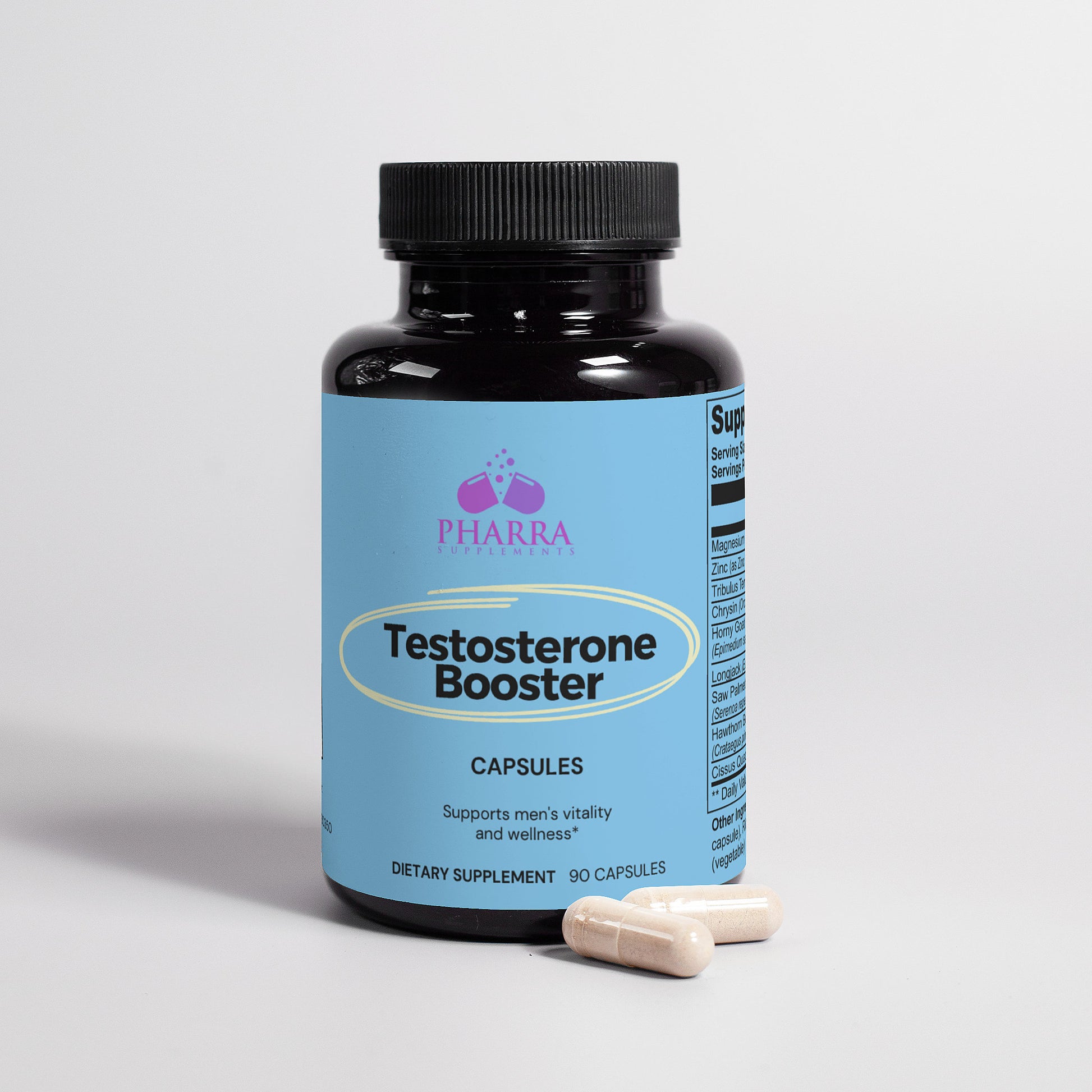 Support Men's Vitality and Wellness: Our carefully crafted dietary supplement is designed to promote men's health and well-being without containing testosterone. Formulated with a blend of key nutrients including magnesium, zinc, tribulus terrestris, chysin, horny goat weed, longjack, saw palmetto berries, hawthorn berries, and cissus quadrangularis, our product supports various aspects of men's health. *